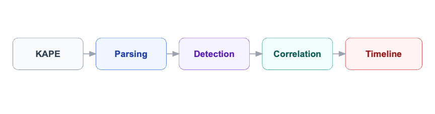 Once the collection was completed, the analyst disconnected from the internal network to ensure full isolation. However, we quickly encountered a major bottleneck: the sheer volume of forensic data collected from more than 50 hosts. Manual analysis was not feasible within the required response timeframe.