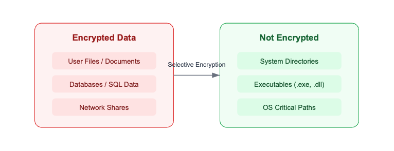 The same architectural pattern that saved operations this time could just as easily have been the attack vector. Unmanaged binaries in flat directory structures, with no integrity monitoring, no allowlisting, and no EDR, are a prime target for binary replacement or DLL hijacking attacks. And next time, a more aggressive ransomware variant may simply choose to encrypt everything — including .exe files — accepting the risk of an unbootable host in exchange for maximum leverage.