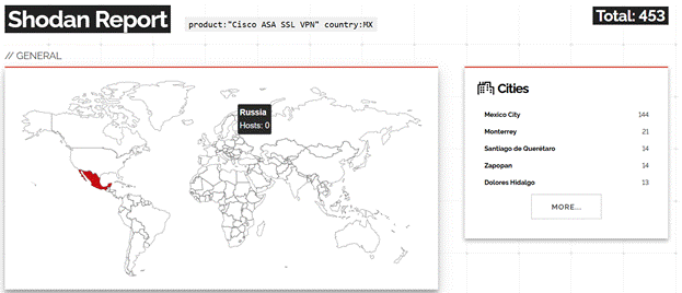Según Shodan a septiembre de 2025, en Mexico existe una exposición actual a esta vulnerabilidad de 453 panales Cisco ASA expuestos y 55852 a nivel mundial.